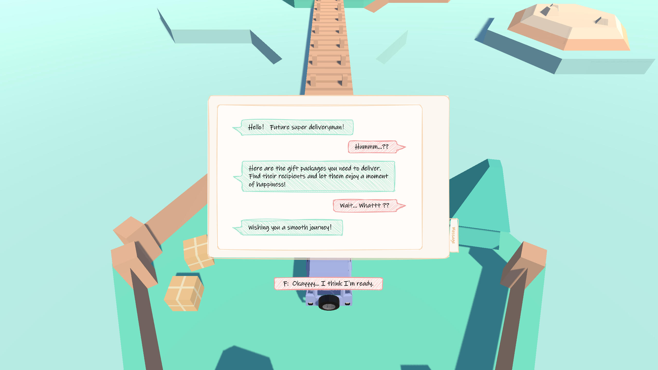 Delivery, conceived as my personal project for an academic assignment, features models and skeletal animations derived from Kenney Assets and Unity Asset Store. I personally designed the game's concept, gameplay, and levels, and completed the entire game, including the programming process, within the Unity engine.For me, Delivery is not only a practical exercise in Unity programming but also a fresh exploration of Unity's physics simulation system, including Collision, Rigidbody, Physical Materials, etc. Simultaneously, this project served as my initial foray into user interface design, utilizing Draw.io as a tool for preliminary experimentation.